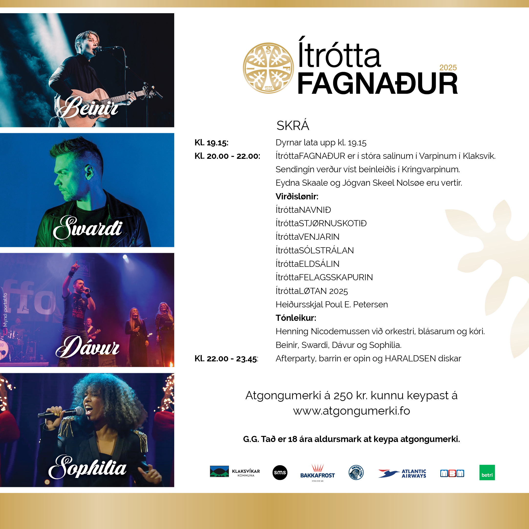 ÍtróttaFAGNAÐURIN 2025 verður leygarkvøldið 7. februar 2026 í í Varpinum í Klaksvík og KVF sendir tiltakið beinleiðis í sjónvarpinum kl 20:00.